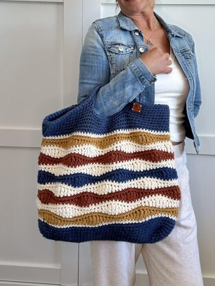 From Ocean to Earth, the Amelia Bag is beginner-friendly. This fun and quick pattern can easily be completed over a weekend. The long wave stitch resembles ocean waves, and you can choose to mix in colors or keep it simple—it's entirely up to you! This versatile bag is spacious yet not overly large, making it an ideal gift for friends and family, or a lovely treat for yourself.