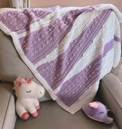 This is a pattern for a beautifully textured, modern, and unique baby blanket. With its distinctive look this blanket will be an instant hit and sure to be well-loved! The stitches used give this piece a light and airy eel that is soft and squishy and perfect for little hands. This would be a great gift for a newborn baby or toddler, baby shower, or even to keep for yourself!