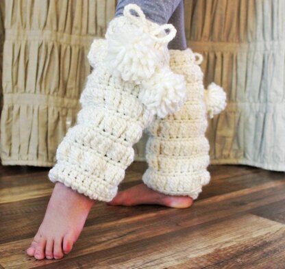 The Bianca Leg Warmers are irresistibly chunky, puffy, warm, and cozy. The puffy stitches give these leg warmers a lovely texture that slouches nicely around the legs. The cutest detail, however, are the adorable pom-pom drawstrings at the top of the warmers. Detailed directions and a template for creating the pom-poms are included!
