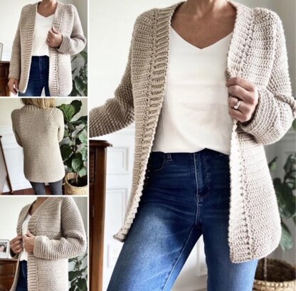 Made with worsted weight, size 4 yarn, this seamless cardigan has a relaxed fit and is made from the top down. I used Yarn Bee Soft and Sleek Low-Pill Fiber from Hobby Lobby, but other worsted, size 4 yarns will also work well. Many step by step photos included in pattern.
