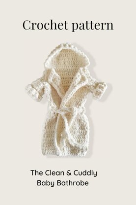 This Clean & Cuddly Baby Bathrobe pattern is an adorable, fun pattern that uses bulky yarn to create an heirloom quality ,cozy robe that can be crocheted in less than a day.