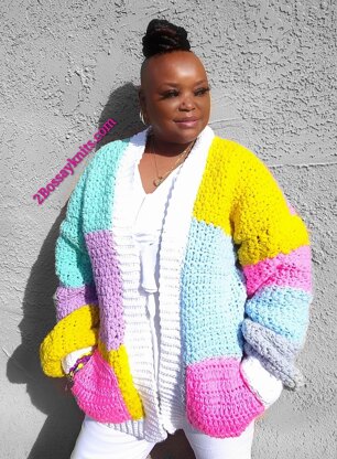 Made up of simple crochet stitches for the body, and baggy sleeves that give a little extra style to this classic cardi! Pair it with jeans and tennis shoes for a dressed down effect, or slacks and boots for a casual look. However you wear or style it will definitely make it the OOTD!
