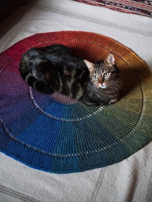 It is a circular shaped piece designed for my 2023 Advent calendar “The Color Wheel”. The small circle could be used as a baby or lap blanket, the large circle could be used as a shawl or blanket.