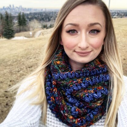 This is an adult sized, one size fits most cowl written at an intermediate level using US crochet terminology. The pattern features 2 sizes.
