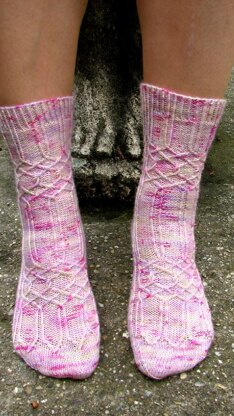 Skill Level: Intermediate-- The sock involves some complex Bavarian cable work including twisted stitches. Finished Measurements: --Circumference: 8(9) inches or 20(22.5)cm --Leg Length: adjustable based on preference --Foot length: adjustable based on fit