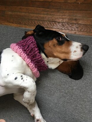 A warm, Cozi Cowl for your canine friend in three sizes: S (M, L). Not meant to fit tight, but just right around your pet's neck. A cowl with a notched collar to accommodate the base of the neck, beginning of chest area.