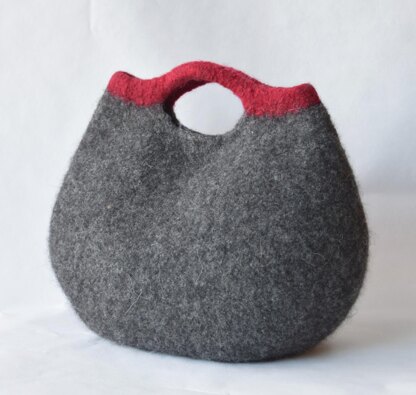 This soft felted handbag features smooth, sculptural lines and a modern silhouette. Knit in the round from the base up, the Curve Bag is finished with an I-cord bind-off in a contrasting color that creates a polished edge and continuous arched handles. Clear instructions are included for every step—knitting, felting, and shaping. Snap closure.