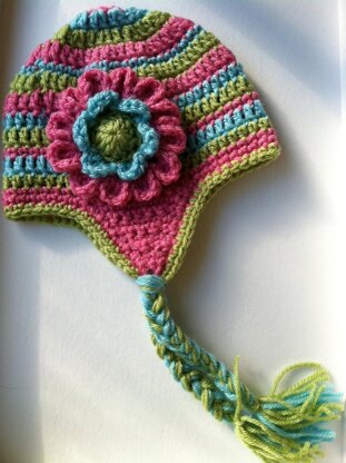 This is such a cute earflap hat! The photos are done in colors that are more for a little girl, but eliminate the flower and create it in different colors, and it becomes perfect for your little boy! Easy to make with a gorgeous result! Enjoy!