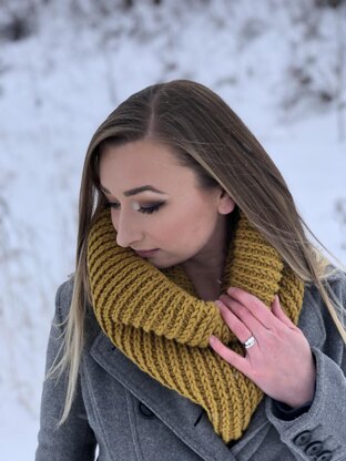 Pattern testers for this cowl had success using Lion Brand Scarfie and Lion Brand Color Made Easy. I used Red Heart Hygge and Lion Brand Wool Spun for my samples.