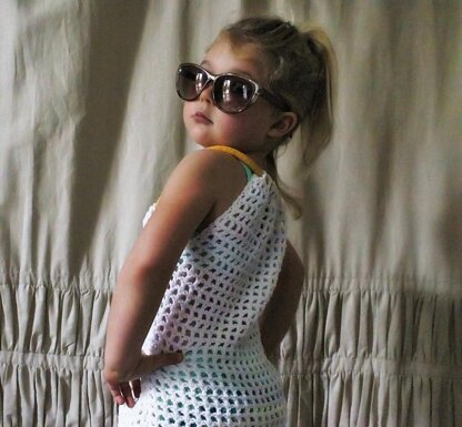 The Drew Beach Dress is a simple little swim-suit cover up featuring a gathered, yoke style neckline and rope tie straps. It works up quickly and easily, and its breathable mesh pattern make it cool and comfortable. Pair with The Maisie Sun Hat to make everyday feel like a day at the beach!