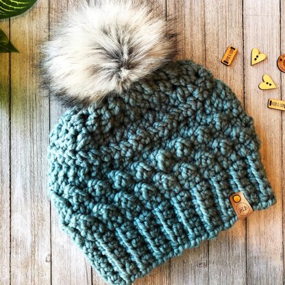 This beautiful hat pairs wonderfully with faux fur poms but is also stunning with no pom!