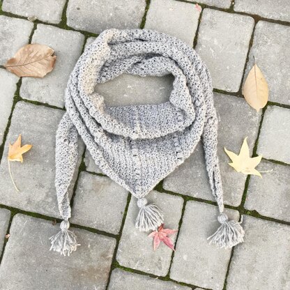 Make this beautiful triangle scarf today! Made using soft aran weight yarn it works up quick and keeps you warm. Pattern includes photo tutorials for all special stitches used. It also includes detailed photo instructions for tassel assembly.