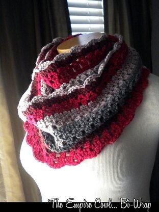 I’m calling this set of cowls The Empire Cowls offer versatile options depending on your mood. You can knit the Uni-wrap version, for a quick and basic cowl that really goes with any look. Or you can do the Bi-wrap version with scallop edging for something a little bit more intense. Or go for the distance and crochet the full Tri-wrap cowl. All 3 versions take EXACTLY one skein of Caron’s new CAKES yarn.