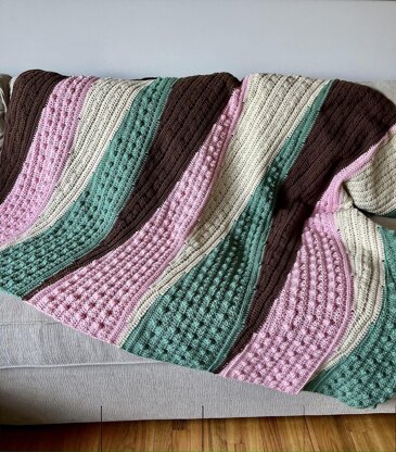 This is a pattern for a beautifully textured and easy to work up throw blanket. With a simple repeat and easy stitches this piece will work up quickly and become a great gift item or your favorite new couch throw! Using a Medium-4 weight yarn this will be come your go-to cozy throw and your favorite pattern to work up as a housewarming gift!
