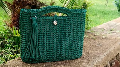 The pattern covers a step by step instruction on how to crochet the Forest Green Classic handbag. the bag requires knowledge of only single crochet therefore it is very easy to crochet even for beginners. The materials required: macrame/ t-shirt yarn/ or bulky yarn that is about 3mm thick, 6mm crochet hook, button, scissors, stitch markers, sewing thread and needle for the button. total yardage required is approximately 270yards