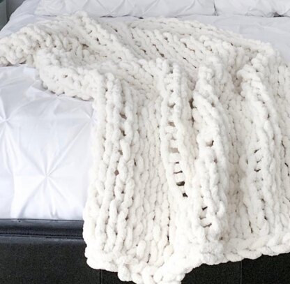 With this jumbo weight yarn, The Grande Blanket knits up in no time + is the perfect addition to any home decor. Fun Fact: Grande means "big" in Italian.
