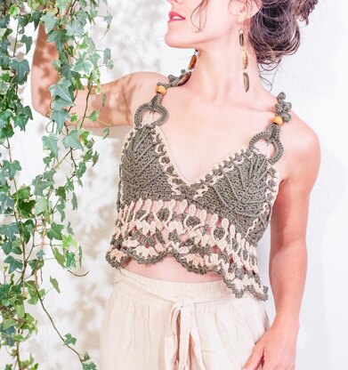 This summery, open-back crocheted top is designed for overbust measurements of 30-46” (76-117cm).