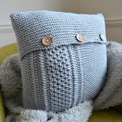 Design: A square removable envelope-style cushion cover with a cable pattern, finished with buttons.