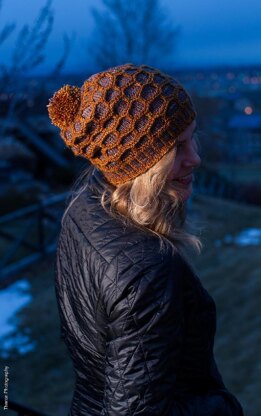 The Honeycomber looks difficult, but it's not. What you see here is the magic of slipped stitches. No Fair Isle, no nothing. Just slipped stitches. All you need to know is knitting in the round and decreases.