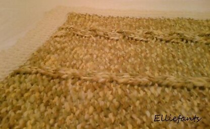 A chunky knit cabled blanket designed for my friends first baby as a floor blanket for the baby to lie on with plenty of texture for them to feel!!