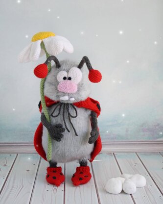 Who is this tiny insect heard around the world? Who has such beautiful red wings with black spots? Who has long antennae and is very curious? The answer is simple - it is a tireless, funny, joyful fidget ladybug. This toy is made with a crochet hook. It wears a hood and slippers. It holds a daisy. Either toy or flower are made with the wireframe, so they are flexible. The pattern consists of 44 pages and contains over 130 photographs and charts. The funny ladybug using the materials stated in this pattern is 11.8’’-30 cm tall. This pattern is a work of authorship, and it intends only for personal use.