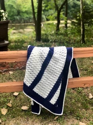 The classic parquet stitch makes for a breezy openwork pattern that works up fast and easy. Combined with bold blue and white stripes, this chic and modern afghan captures the essence of summers by the lake. Let’s get started and together crochet something beautiful! ~CM