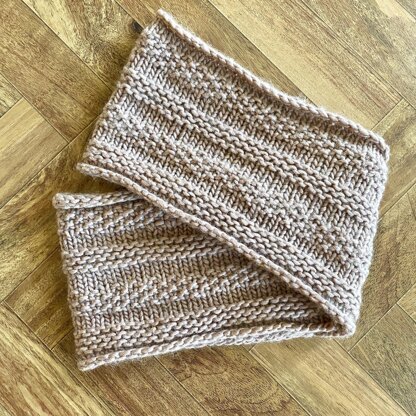 I designed this pattern to be easy for beginners and as an opportunity for knitters to practice a variety of textures! It utilizes stockinette, seed stitch and garter stitch textures throughout the pattern. Because the first and last segment is knit with stockinette, the edges will curl once the cowl is completed. If you like this look, it can be left as is for a design element! Otherwise, I recommend blocking to straighten out your edges.