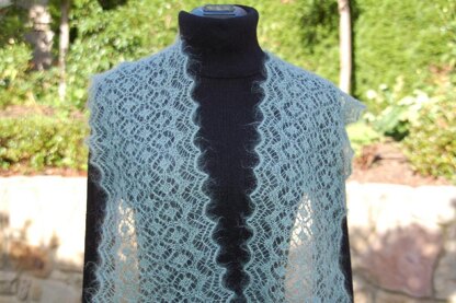 In 'knitted lace', the design is knitted in every row, compared to 'lace knitting' in which patterned rows alternate with rows of plain knitting. This makes the scarf a bit more challenging than the standard lace scarf pattern, but much more rewarding when the fineness of the scarf is revealed after blocking.