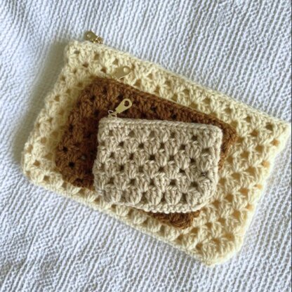 A slight take on the traditional granny square the Mabel Bag set is a versatile crochet pattern to make 3 different size bags with zip and lining. Some sewing skills needed to insert the lining but is not essential to add.