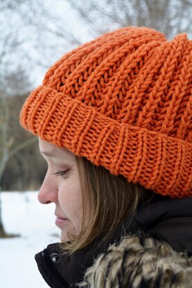 The Maple Hat is named for the beautiful red and orange leaves that come out during the fall around my home in Idaho. It uses the Fishermen's Rib stitch in the body, creating a warm winter beanie. It would be a good hat for beginning knitters who want to go beyond the basic knit and purl stitches.