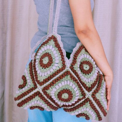 The written pattern for the bag is supported with step by step flat lay pictures, granny square chart and elaborate video tutorial. The video tutorial covers following steps-Part 1- how to make granny square , Part 2- how to join granny squares, how to give crochet edging to the bag, how to make bag straps, how to join straps to the bag, how to give lining to the bag.