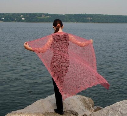 This pattern was released as a PDF download on Ravelry on July 13th, 2008. It is a square, worked from the center, growing out to the edges. It was designed as a shawl, but would make a lovely Christening blanket also. The pattern is fully charted and is for the intermediate lace knitter who is comfortable using charts.