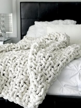 The Moderno Throw Blanket features a fun stitch pattern making counting your stitches for the first few rows important. Once you get into the rhythm of it, you'll finish in no time, as this jumbo yarn works up quickly. Made with 100% polyester yarn, the Moderno can be machine washed and dried and will never pill like those merino wool blankets you see all over the internet. This cozy + modern piece feels like a weighted blanket that you will be fighting your family for. Fun fact: Moderno means "modern" in Italian.