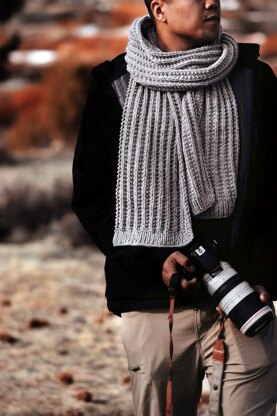 "Classic and practical with a reversible texture makes The Mountaineer Scarf the perfect cozy accessory for any outdoorsman."