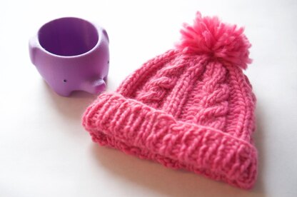 This cabled beanie pattern makes a lovely knitted beanie. It's a fun pattern on chunky yarn that knits up very quickly. Knit in the round, on your choice of either DPNs or circular needles. I've added instructions for five different sizes, ranging from infants all the way up to adult men's size, so you can make one for every member of your family!