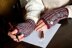 The Novelist’s Mitts are worked in two-colour brioche in the round. They're a small project that will keep you interested with all sorts of techniques.