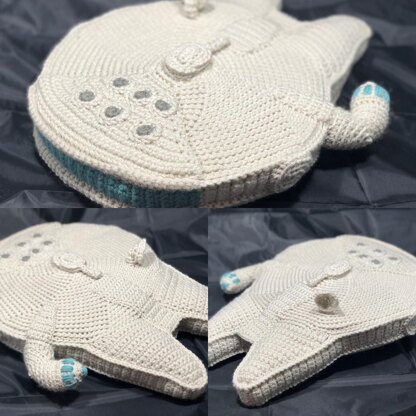 This is the digital crochet pattern for The Piece of Junk. You know the one from that popular movie franchise about battles in space. It's the ship that belongs to the smuggler and his co-pilot. The one that made the Kessel run in 12 parsecs... you know the one :)
