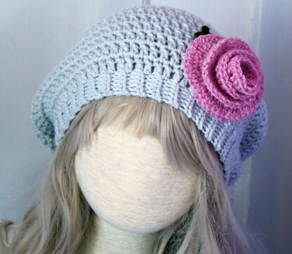 This quick, easy and stylish slouchy crochet hat pattern only needs one 4 oz (100 g) skein of worsted or Aran weight yarn to complete, plus oddments of light worsted (8ply/double knitting) yarn in two other colors, so it's a great stash-buster project.