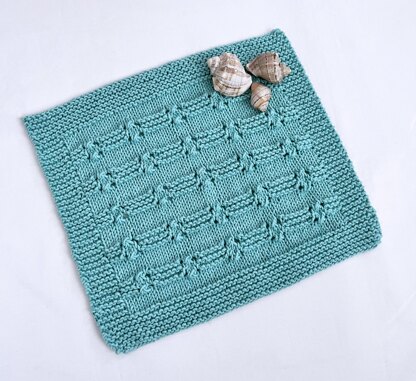 This is a dishcloth, knitted flat, from the bottom up with a garter stitch border and a body with a textured stitch look. I used an easy-to-remember pattern for it, making it suitable for beginners with some experience.