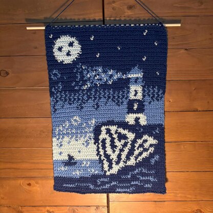 This listing is for a PDF download of a pattern to create a tapestry crochet scene of the sea at night 🌊⛵️ 🌔