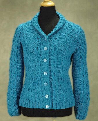 This cardigan has a classic, timeless silhouette with two different cable stitch patterns. The stitch patterns are written in text and are charted. The sleeve is a classic set in version. The ribbed edges are integrated with the cable patterns. All sections are worked bottom up. The pattern includes full set up rows written by size to aid the knitter to establish cable stitch patterns. It makes the pattern appear long but you'll be skipping over sections that apply to sizes other than your own.The front band is picked up in one piece, along the front edge, around the back of the neck and down the other front, with a long circular needle. I chose the Briggs and Little yarn because I've knit many cable projects in the past using it. It has great stitch definition and stands up to hard wear. Some of my oldest sweaters knit with Briggs and Little look the same as they did when they were first knit.
