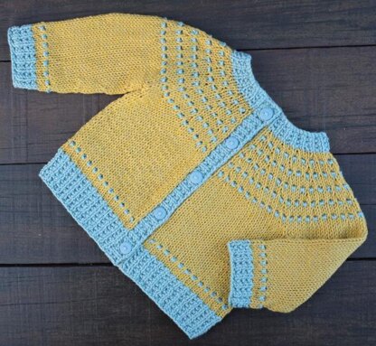 The Spotty is a baby and toddler cardigan that's knitted top-down. The little spots are made using just one colour and a combination of knit, purl and slipped stitches. Spot on! There is a hat included for the 3 month's size. There are 5 sizes: 3 months to 3 years.