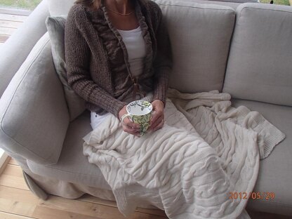 This blanket is so decorative. Nice, soft and warm - a perfect company for your teatime in autumn and winter! Despite the size I found it quit fast to knit - and with the gorgeous alpaca it was perfect to knit in the cold season. The bigger it got, the more warmth it gave! I have it lying about in a dark grey sofa - and the whole family (dogs included!) is fighting over it!:) If you like the cardi in the pictures you can find the pattern here at Ravelry - named The Teatime Cardi. A big Thank You to all of you giving my pattern a heart! I really appreciate it!/Anne PS. The error in the pattern is corrected june 17th 2013. DS