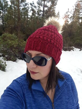 A pom pom completes the look for me, but it is optional. Pattern give you the option for a shorter hat as well