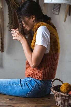 Type: Individual pattern Format: Leaflet Crafts: Knitting Needle sizes: 6.5mm Categories: Vest Ages: Adult Yarn weight: 12ply, Chunky Construction method: In the Round Featured yarns: Manos Cardo