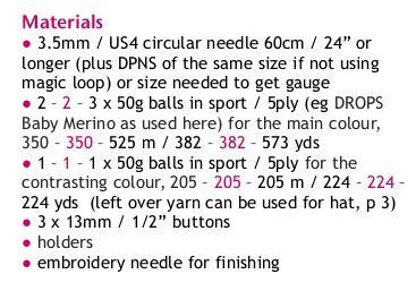 - This pattern is knitted with Drops Baby Merino . See materials picture for more information on yardage.