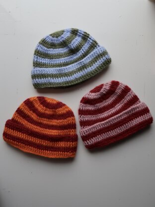 Crochet pattern to create my striped crocheted beanie hat; 'The Wally Hat' Difficulty level- Beginner/intermediate (suitable for confident beginners) You will need- 6mm crochet hook and approx. 120g of aran yarn Pattern with images to make it easy to follow along For personal use only Written in English with U.K crochet terms One size- adult