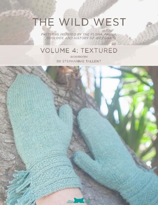 The Wild West: Patterns Inspired by the Flora, Fauna and Geology of Arizona is a collection of 5 print & PDF books. The fourth, Textured, includes the following patterns: Javelina hat, Gila Mitts, Mica Cowl, Painted Desert Hat, and Coyote Mitts.