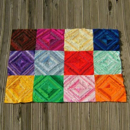 This is just what you need to use up all those oddments - and there is no need to worry about darning in the ends! You can use any thickness of yarn but it should be (roughly) the same thickness throughout. It is easy to adapt the size of the squares to make an afghan the size you want.