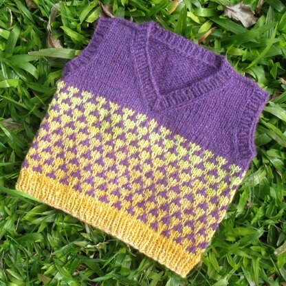 made using slipped stitches so only one colour is used at a time. There are 8 sizes: 3 months to 8/9 years.